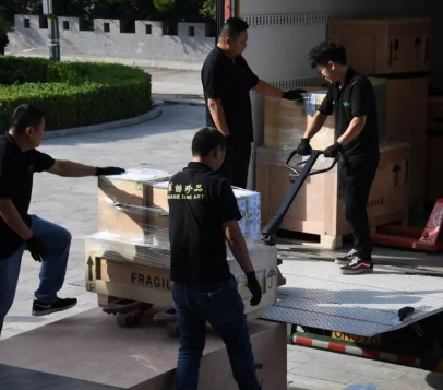 在搬運過程中,工作人員多次使用了手動液壓搬運車,這是一種底盤較低、結實耐用、輕盈小巧的貨物搬運工具,托盤可以直接放入文物箱體之下,方便移動箱體。省去了人力搬運的復雜過程。是博物館文物、貨物搬運的好幫手。